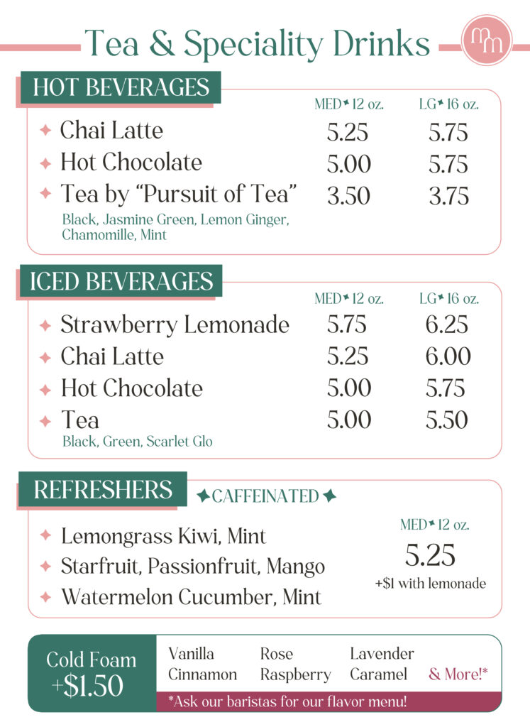 Enjoy vibrant matcha lattes, refreshing iced teas, specialty La Colombe coffee, and house-made treats at Moka Matcha.